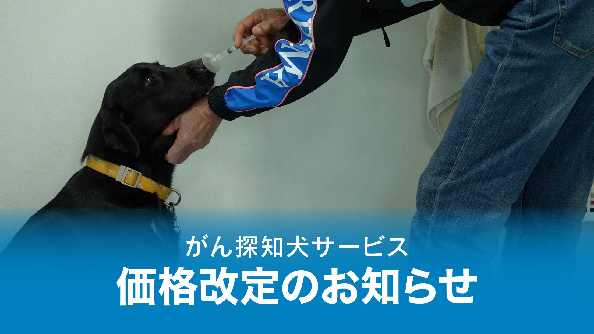 がん探知犬サービスの利用料金を、現行の66,000円(税込み)から38,000円(税込み)に改定いたします。