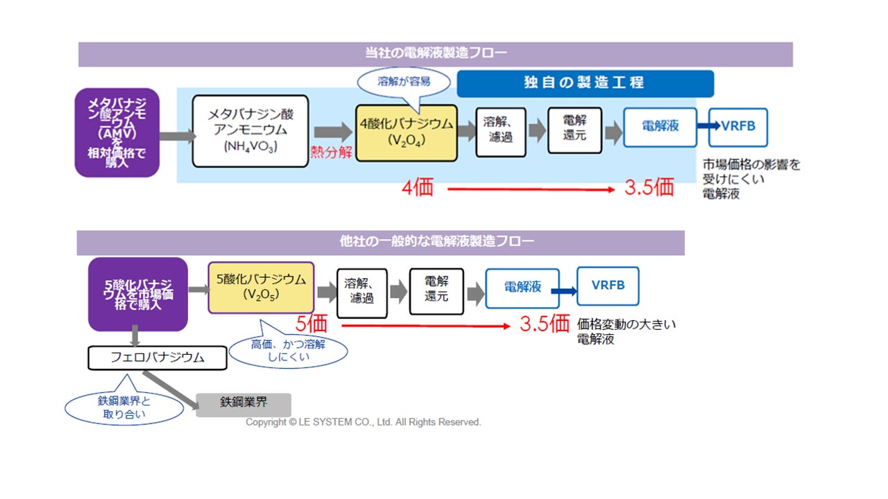 このような潮流の中で、バナジウム等のレドックスフロー電池及び電解液製造の中国企業の新参入も見受けられますが、LEシステムがこれまで蓄積してきた優位性は簡単にはゆるがないと考えています。