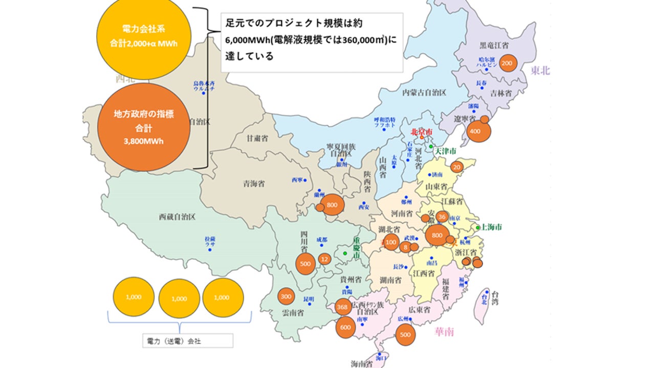 近年、中国では政府の政策および開発支援策の下で、バナジウムレドックスフロー電池に関連するESSプロジェクトが相次いで発表されていいます。