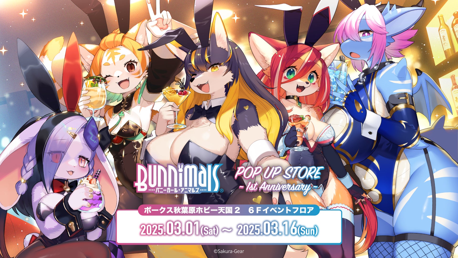 株式会社サクラギア(本社:埼玉県川口市、代表取締役:石川圭)は、2025年3月1日(土)から2025年3月16日(日)の期間限定で、ボークス秋葉原ホビー天国2にて『Bunnimals -バニーガール・アニマルズ-』のポップアップストアを開催いたします。