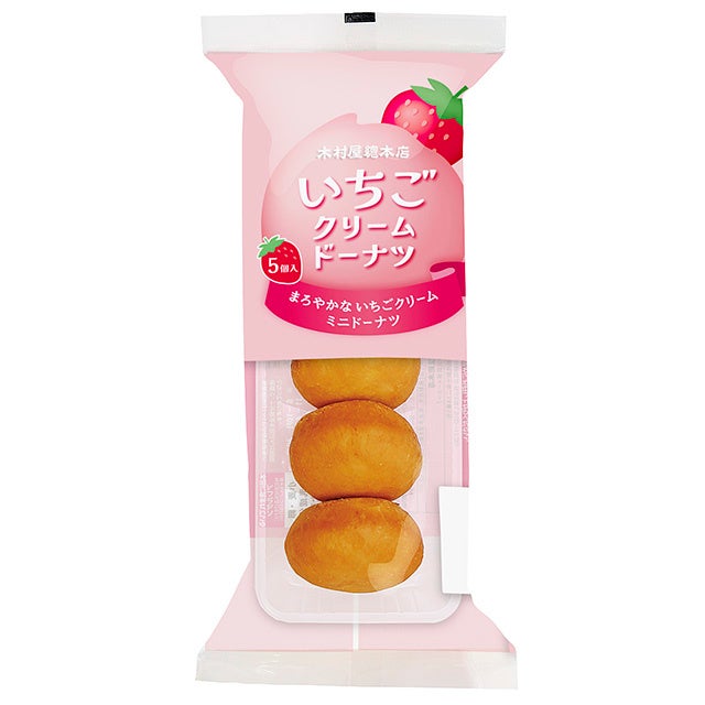 まろやかな甘さのいちごクリームを、しっとりふんわりとしたドーナツ生地で包みました。ミニサイズの5個入で、おやつにぴったり。