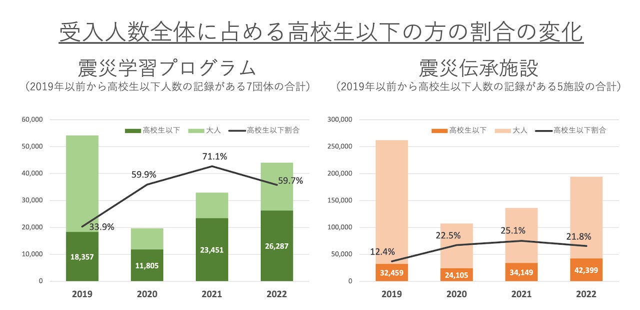 - 全体の受入人数が回復してきた2022年は、「受入人数全体に占める高校生以下の割合」が前年比で減少したものの、「高校生以下の受入人数」は増加した。