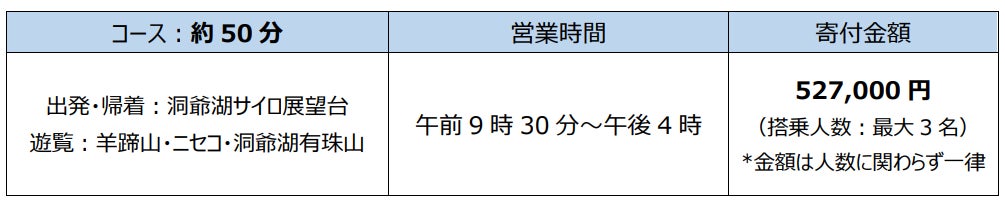 ■23年5月1日(月)〜10月31日(火) 「洞爺湖スカイクルージング」(離発着:洞爺湖サイロ展望台)