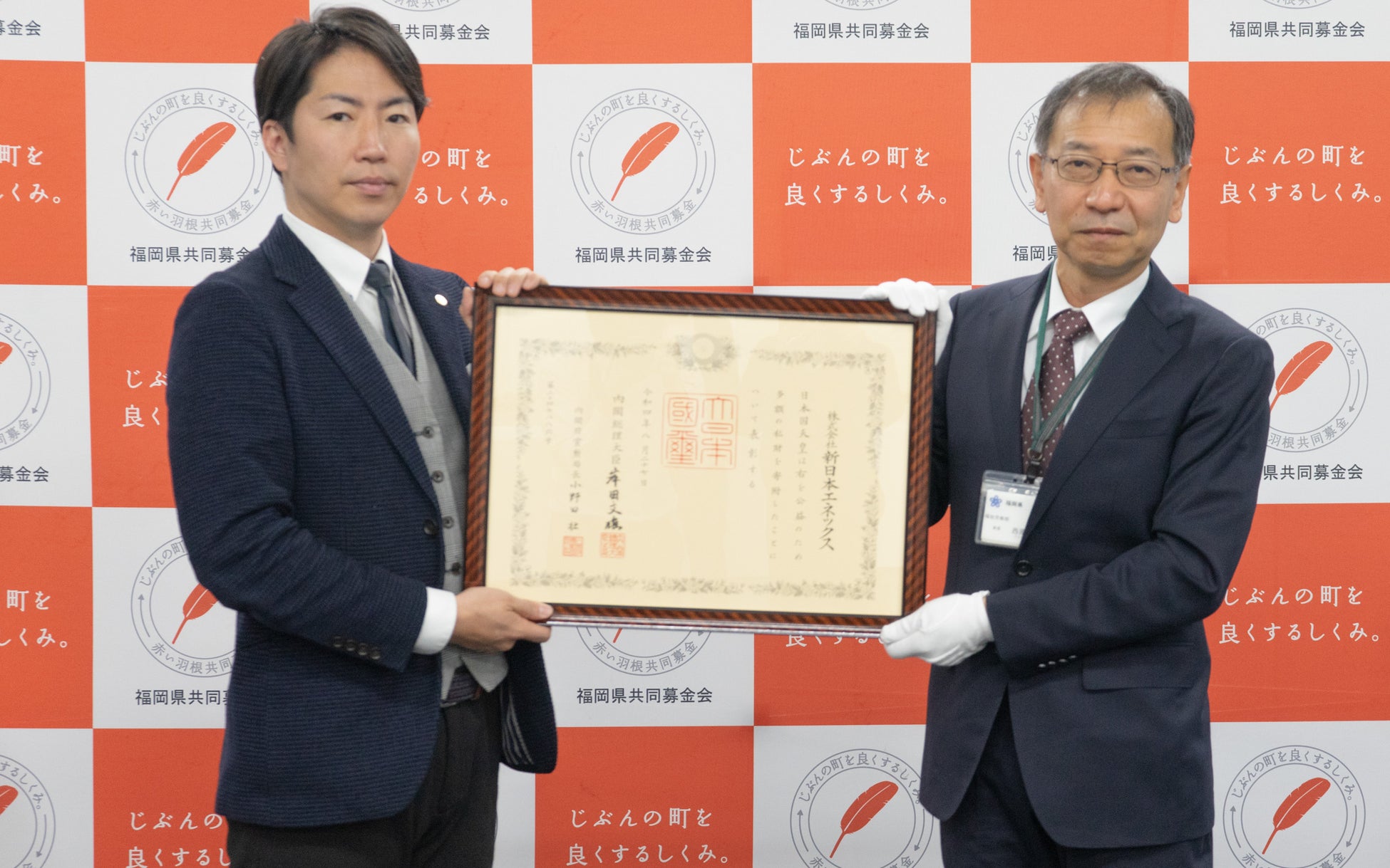 日本政府より『紺綬褒章』を受章「福岡県赤い羽根共同募金」への寄附の功績により 【株式会社新日本エネックス】