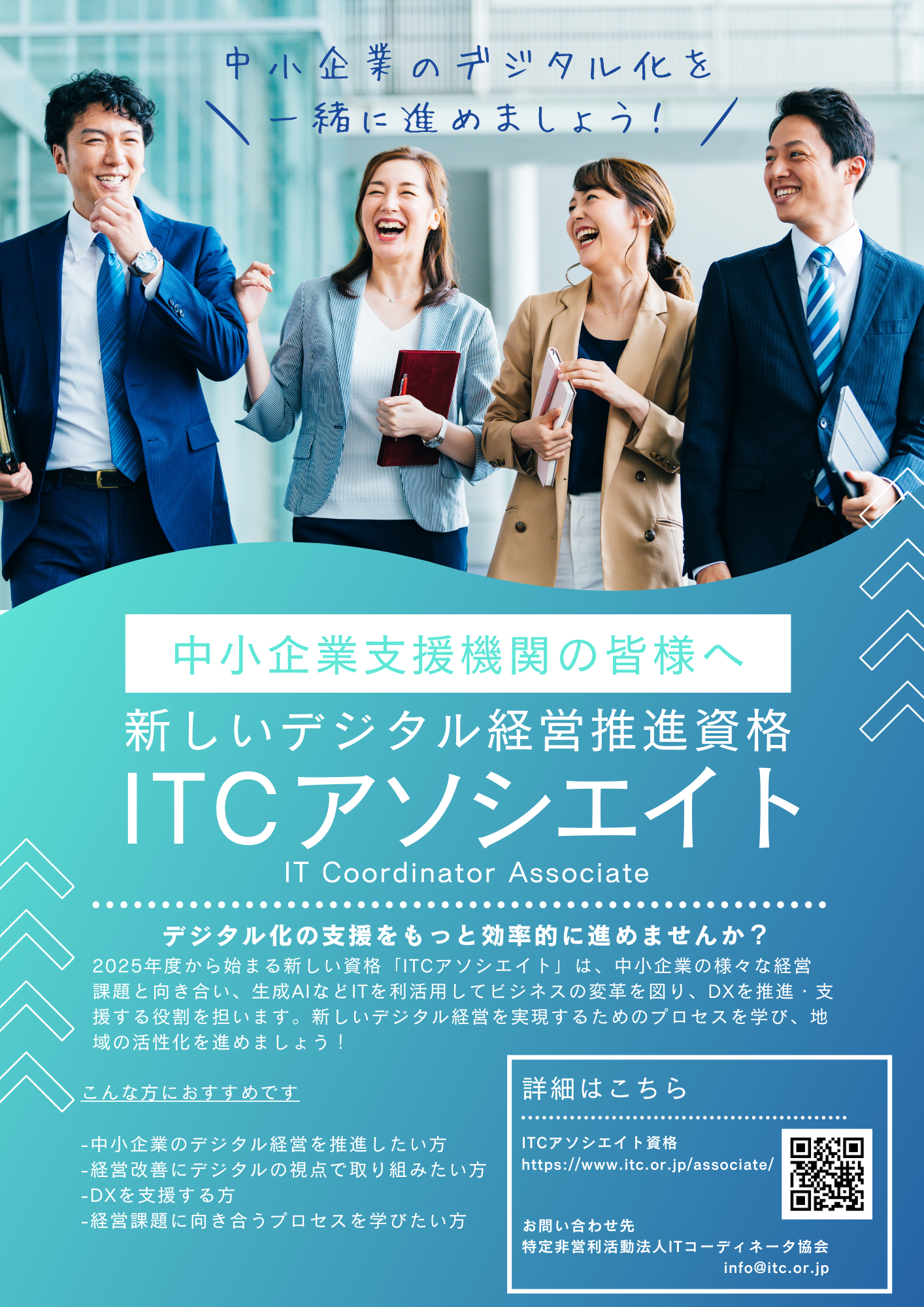 ITコーディネータ協会(東京都中央区、会長・野村真実)は、経済産業省と検討を重ね、主に中小企業支援機関の従事者を対象としたDX推進支援のための資格「ITCアソシエイト」を創設し、2025年4月より運用を開始します。