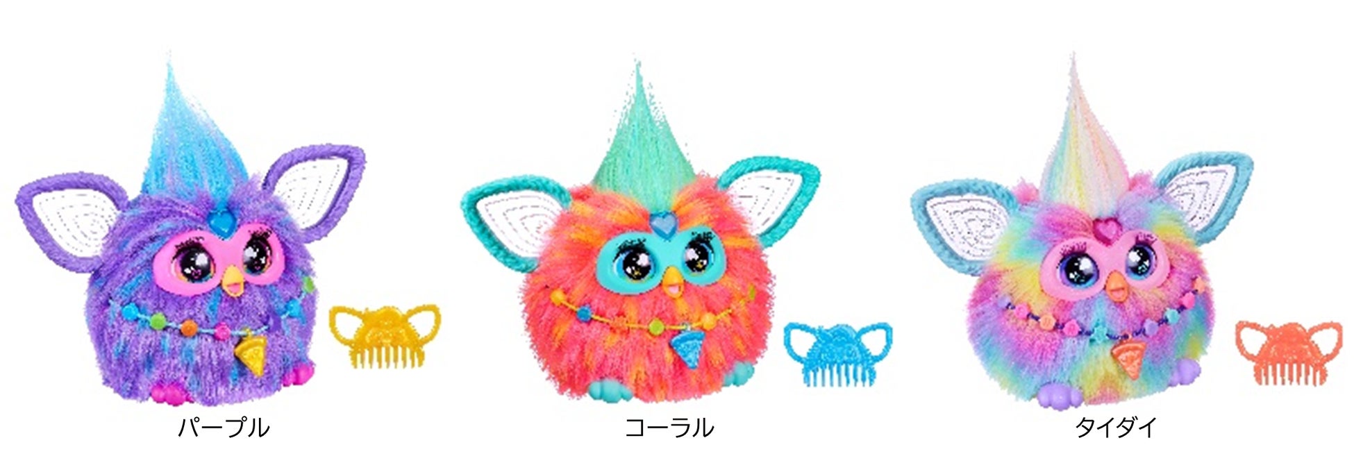 ベストフレンドになってくれる最新版ファービーはパープル/コーラル/タイダイの3種類展開です。