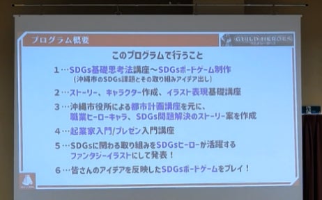 株式会社ギルドヒーローズ(所在地:東京都千代田区、代表取締役:森井聡)は、学校法人仙台育英学園と探究学習(総合的な探究の時間)における共同教育研究を行い、沖縄県沖縄市の仙台育英学園高等学校広域通信制課程ILC沖縄(以下、ILC沖縄)の探究学習において、「SDGsヒーローを活用した産官学・地域連携型探究学習」を2023年10月~2024年1月にかけて実施しました。また、2024年度は仙台育英学園沖縄高等学校(全日制課程)で引き続き導入を予定しております。