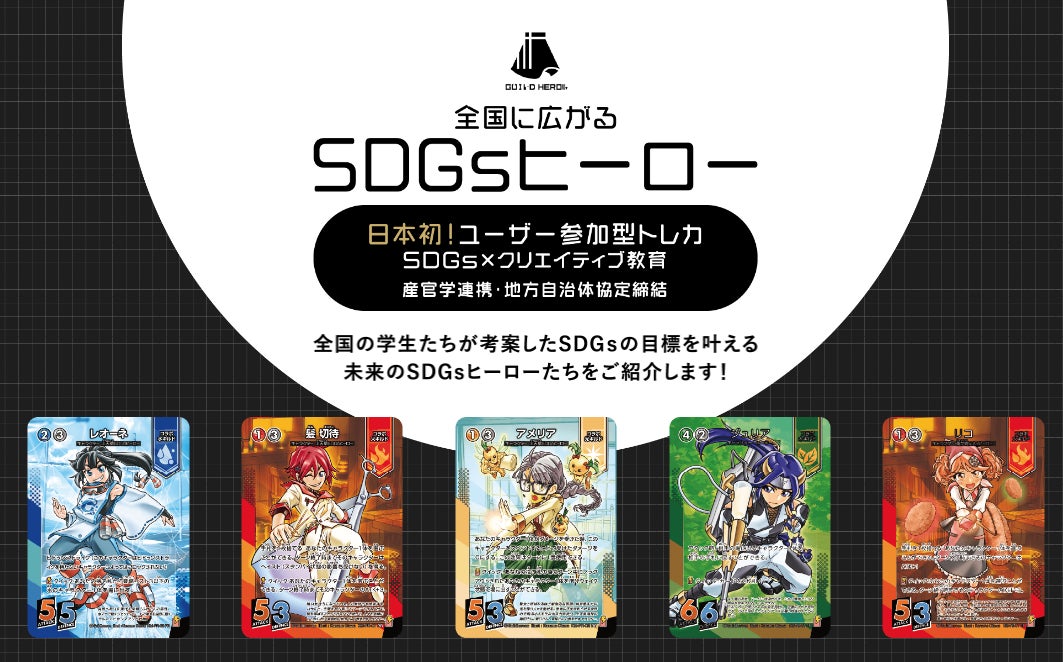 株式会社ギルドヒーローズ(以下、ギルドヒーローズ)は全国の自治体とSDGs教育の推進、起業家教育の推進、シティプロモーションの実施等について包括連携協定を締結し、地元のPRと地方創生、SDGsの目標達成に貢献する教育プログラムを提供しています。公立/私立の小学校~高等学校の総合学習や探究学習プログラムとして注目され、2023年1~3月には熊本県上天草高等学校にて特別講座を実施し、日本初のSDGsヒーロー「髪 切待(カミ キリタイ)」と「アメリア」が上天草市に誕生しました。その後、茨城県龍ケ崎市、茨城県常総市など、続々とSDGsヒーローが誕生しています。