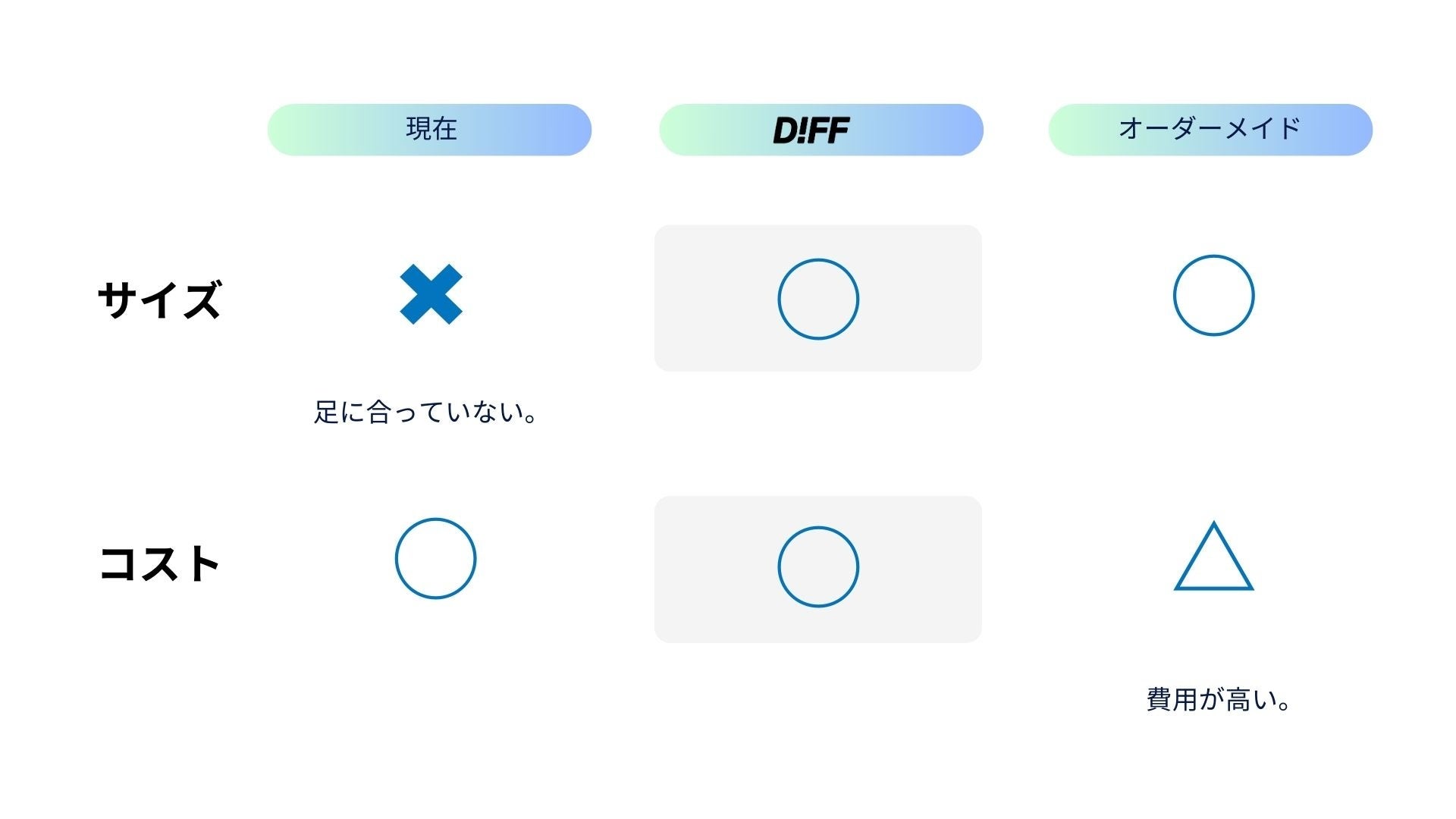 「足の怪我や不安」「自分の足に合った靴を選ぶための費用・価格」に悩む方々に向けて、オンラインでシューズを片方ずつ購入できるサービス『DIFF.』を作りました。