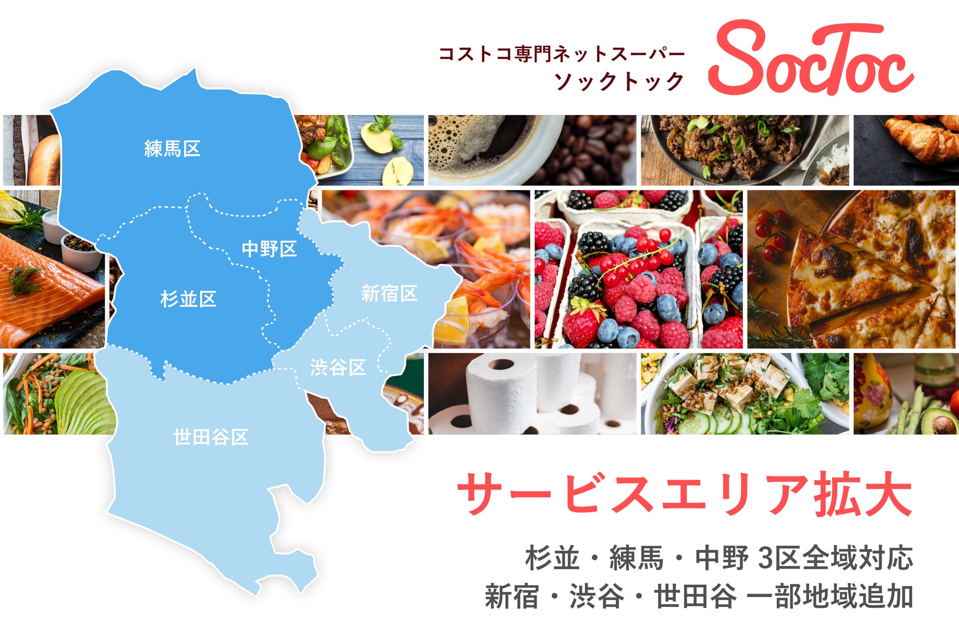 コストコ専門ネットスーパーSocToc、サービスエリア拡大。杉並・練馬・中野全域対応、新宿・渋谷・世田谷を追加