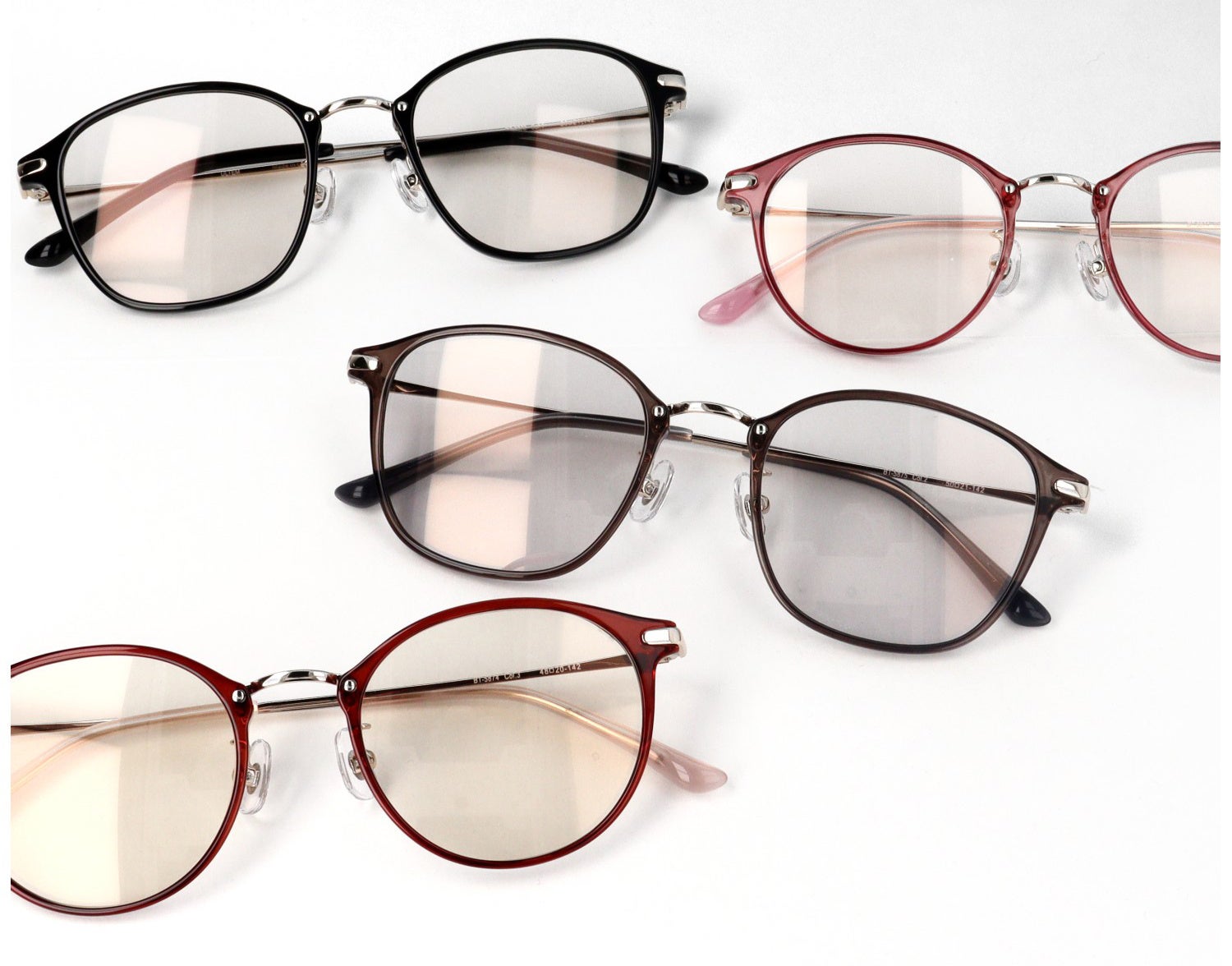 フレームはウェリントン型とボストン型の2タイプ、カラーは全6色ご用意しています。