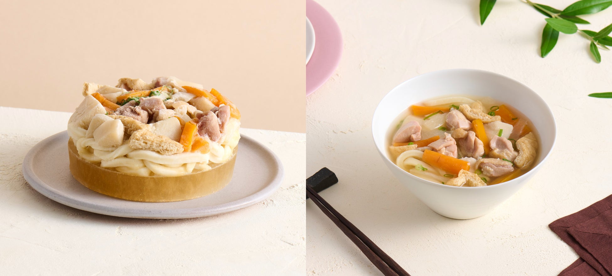 「忙しい人に、幸せな瞬間を。」のコンセプトのもと、麺、出汁、具材まで1つにした手作りならではの新しい冷凍うどん。本場の讃岐うどんを手軽に味わって頂きたいという想いで完成しました。