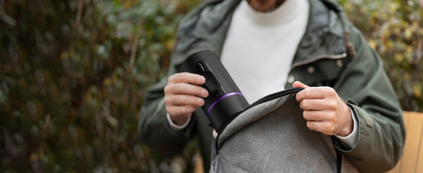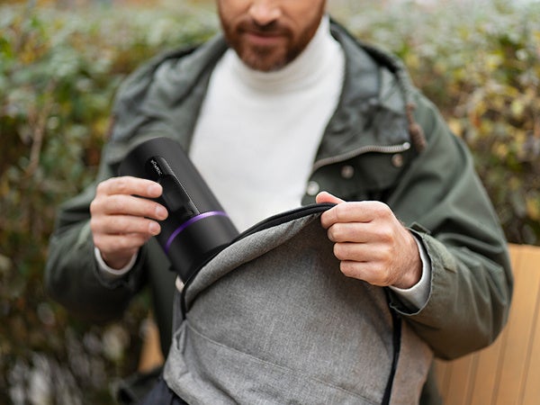 サイズは500mlのペットボトルよりも少し小さく、重さは720gほどで、バッグに簡単に収納できます。旅行やキャンプ、バルコニーなどで映画鑑賞のお供として使用できます。上品なマットブラックの専用キャリーバッグも付属しており、プロジェクターとその他の付属品を整理して、安全に収納することができます。