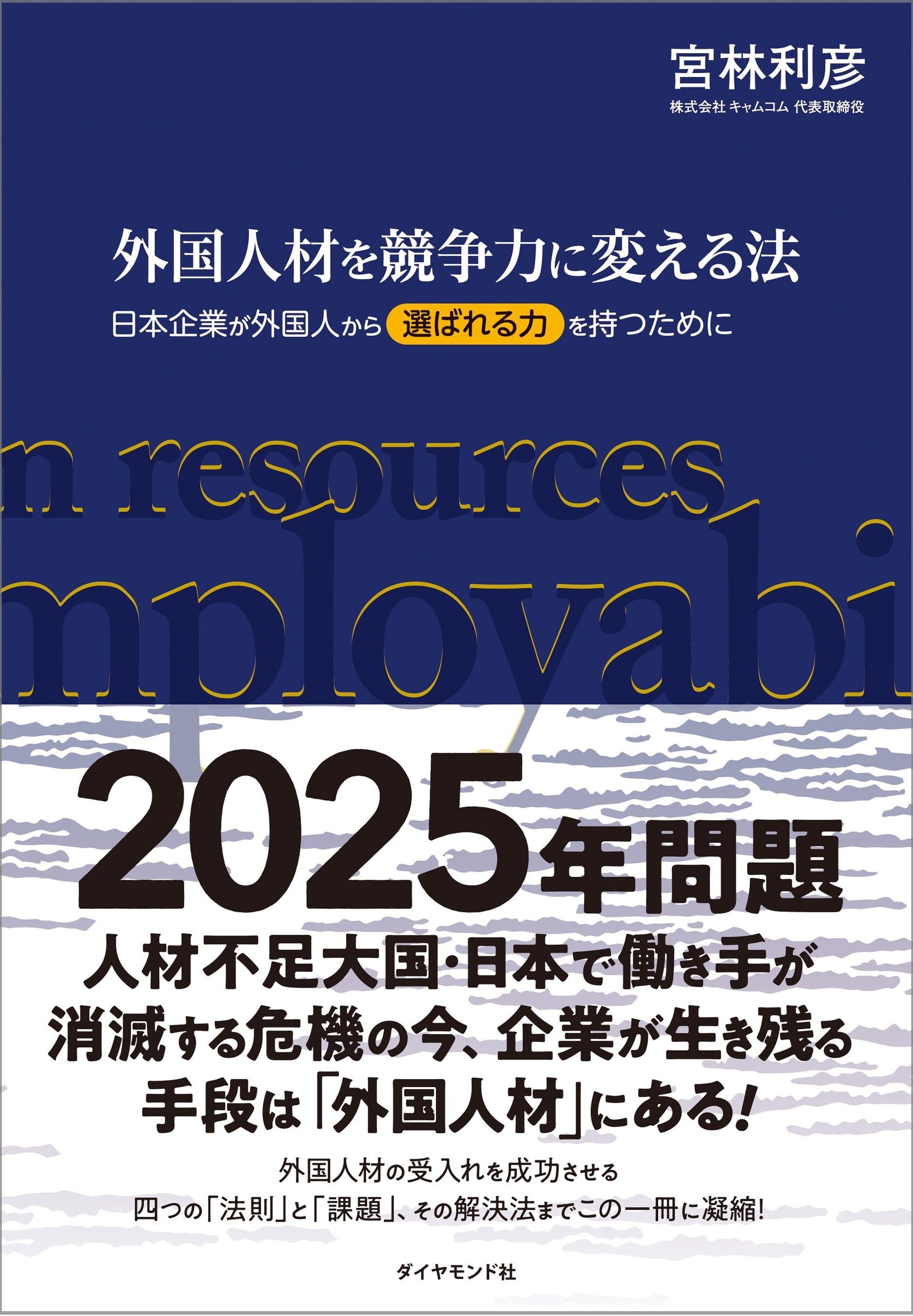 国を挙げての⼈材確保が叫ばれる中、20年以上に渡り雇⽤の課題解決に向き合い、外国⼈材の受け⼊れに取り組んできたキャムコムのグループの株式会社キャムコム代表取締役の宮林利彦が、外国⼈材の受け⼊れを成功させる法則と課題、その解決法までを論じた初の著書を24年6⽉25⽇より順次発売いたします。技能実習⽣・特定技能外国⼈・技⼈国など、外国⼈材を真の意味で“ビジネスパートナー”として受け⼊れ、活躍を促進するための課題やノウハウ、事例を凝縮した⼀冊です。