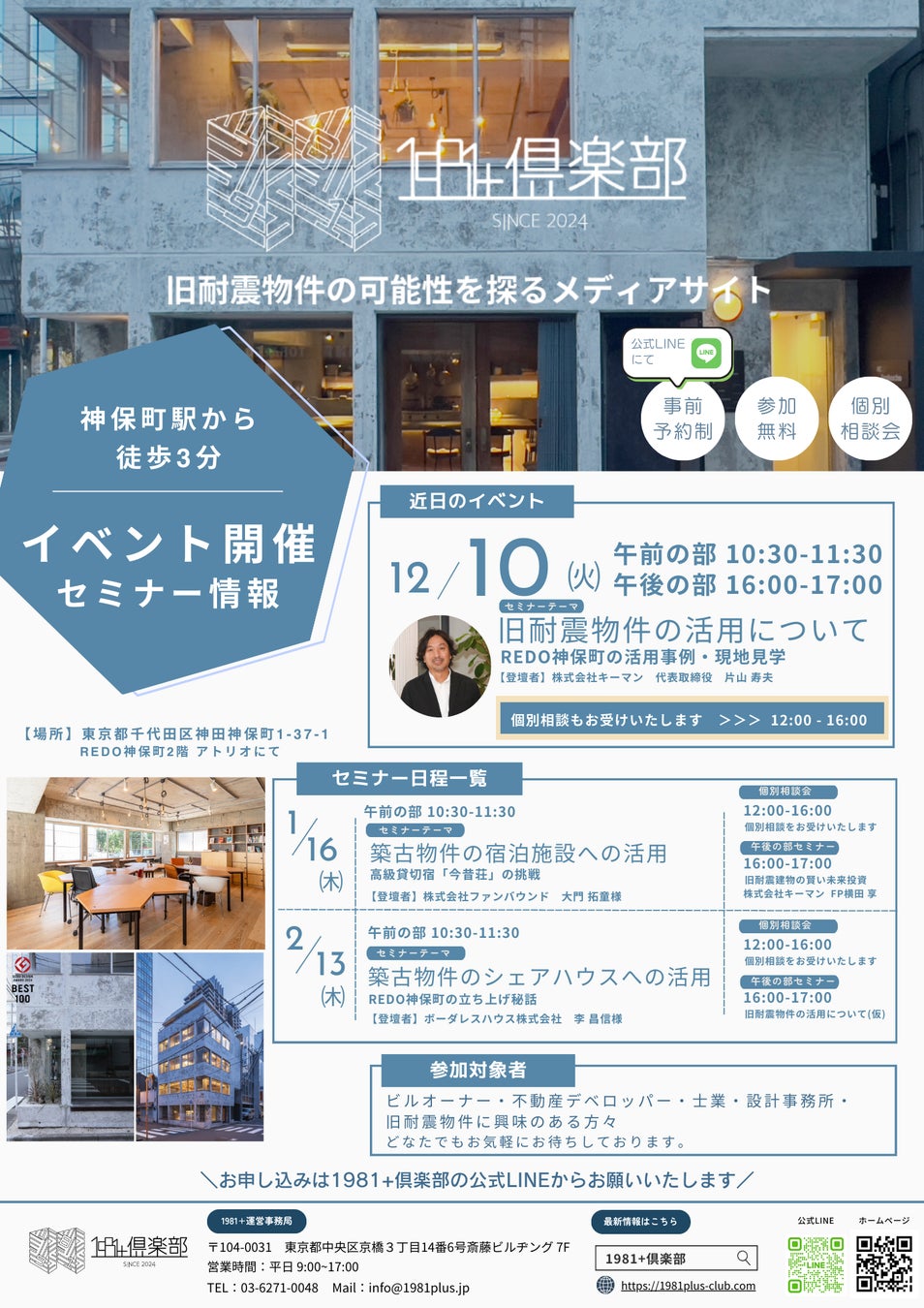 「1981+倶楽部」では月に1回、定期的に旧耐震に特化したイベントを開催いたします。