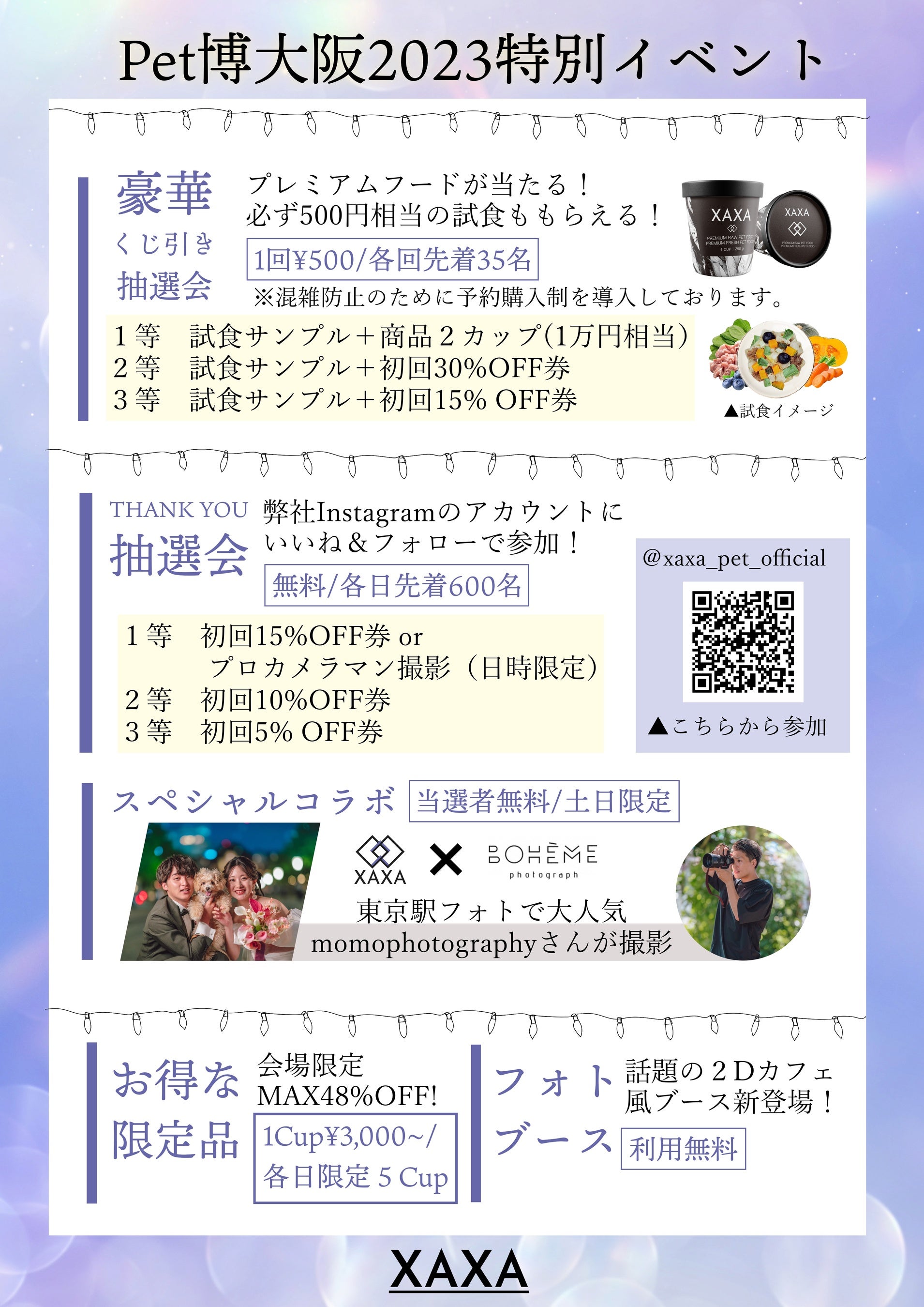日本のペットフードブランド「XAXA」が国内最大級ペットイベント「Pet博大阪2023」に初出展いたします。