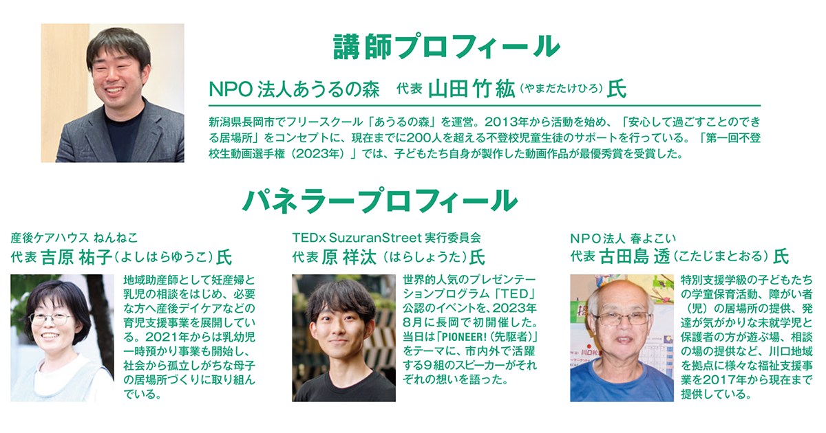 今回のイベントでは、彼らの日々の活動や日頃抱いている想いなどをお聴きし、地域の未来について考えます。
