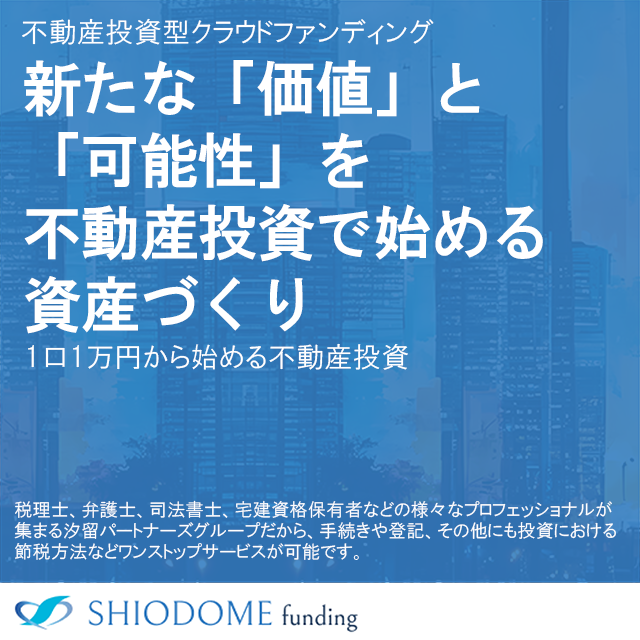 「汐留 funding」は、会員登録から契約締結に至るまでをオンライン上で完結可能な不動産投資型クラウドファンディングです。現物不動産投資でもない、J-REITでもない、1口少額からどなたでも気軽に始められる「第3の不動産投資」サービスです。