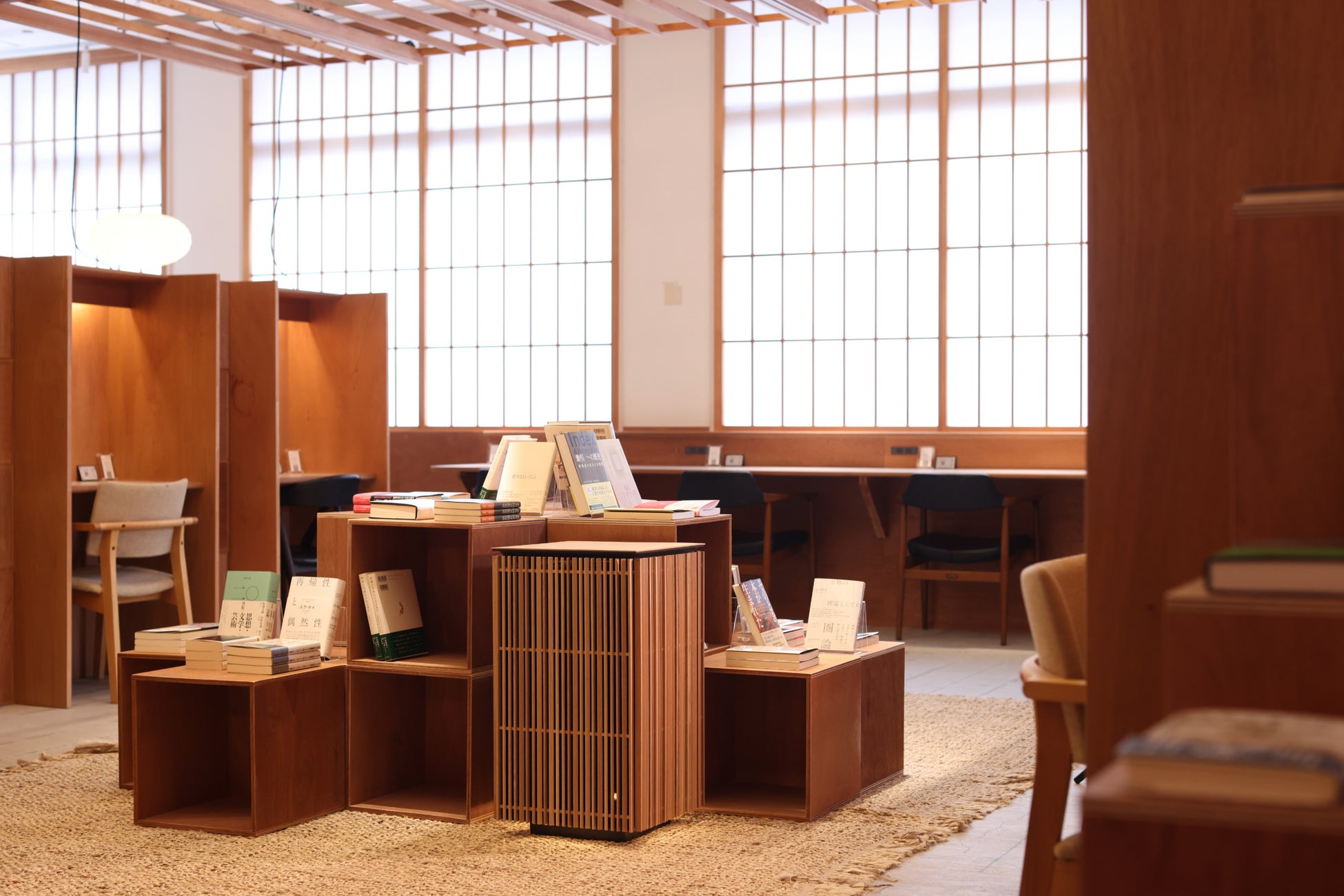 心赴くままに本とすごす場所「書院」に空気の浄化により本の世界に没頭できる空間作りを実現する「プラズマクラスター空気清浄機<FU-90KK>」を導入。
