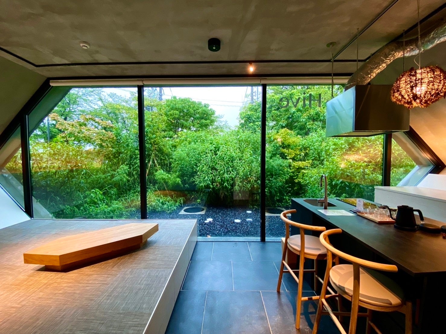 「Co Hive」は、The Hiveの世界観を受け継ぐ「巣」をモチーフとした六角形デザインの一棟貸切スイートヴィラ。設計はU Share Inc.によるもので木造集成材構造の豊かな空間に地元富山県の和紙と組子欄間の職人の技を取り入れた設えが特徴です。グループ貸切での宿泊利用はもちろんThe Hiveサウナとの併用も可能。従来以上のグループでの利用が可能です。