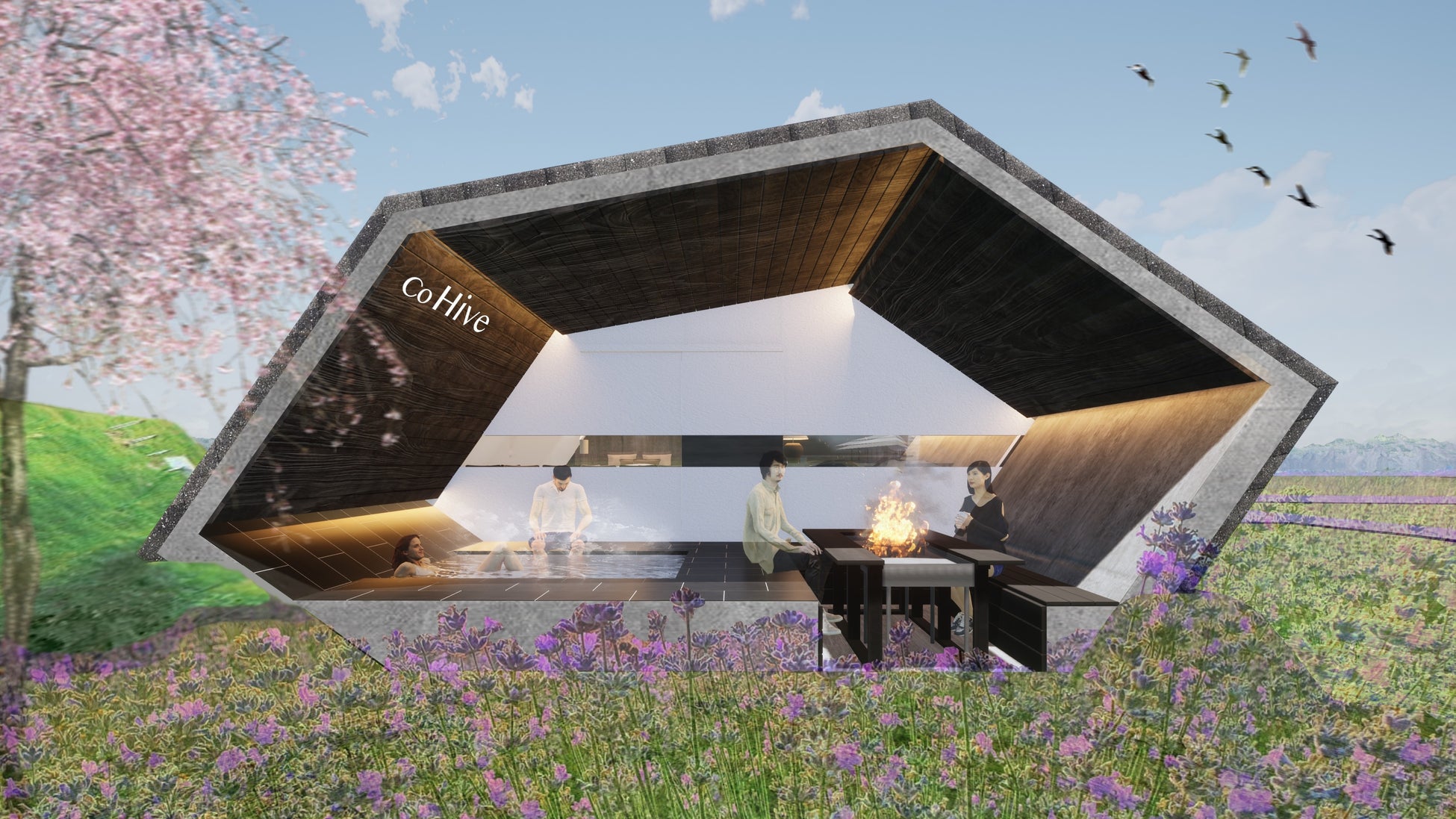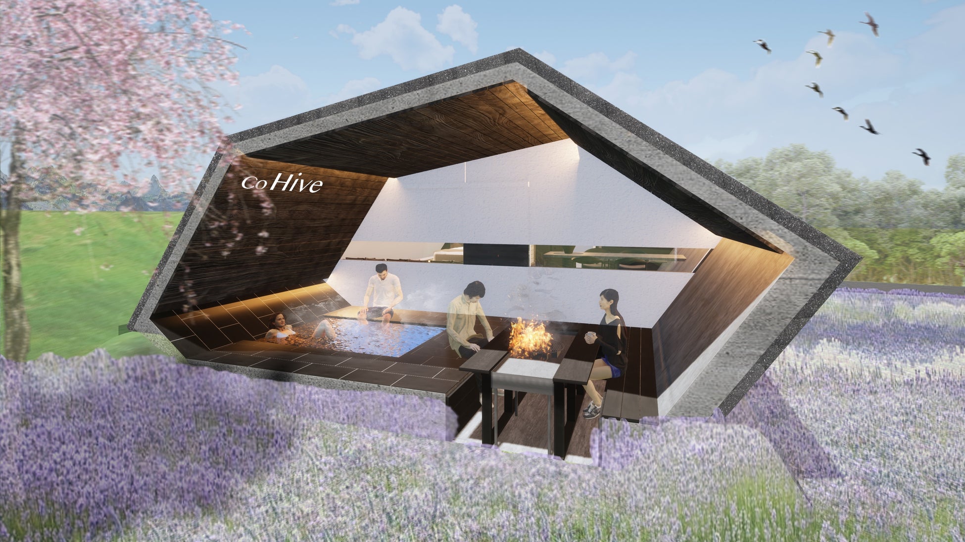 世界中から人々が訪れる“土の中のサウナホテル”『The Hive』が3周年を迎え、温浴露天風呂付きスイートヴィラ「Co Hive」を今夏オープン