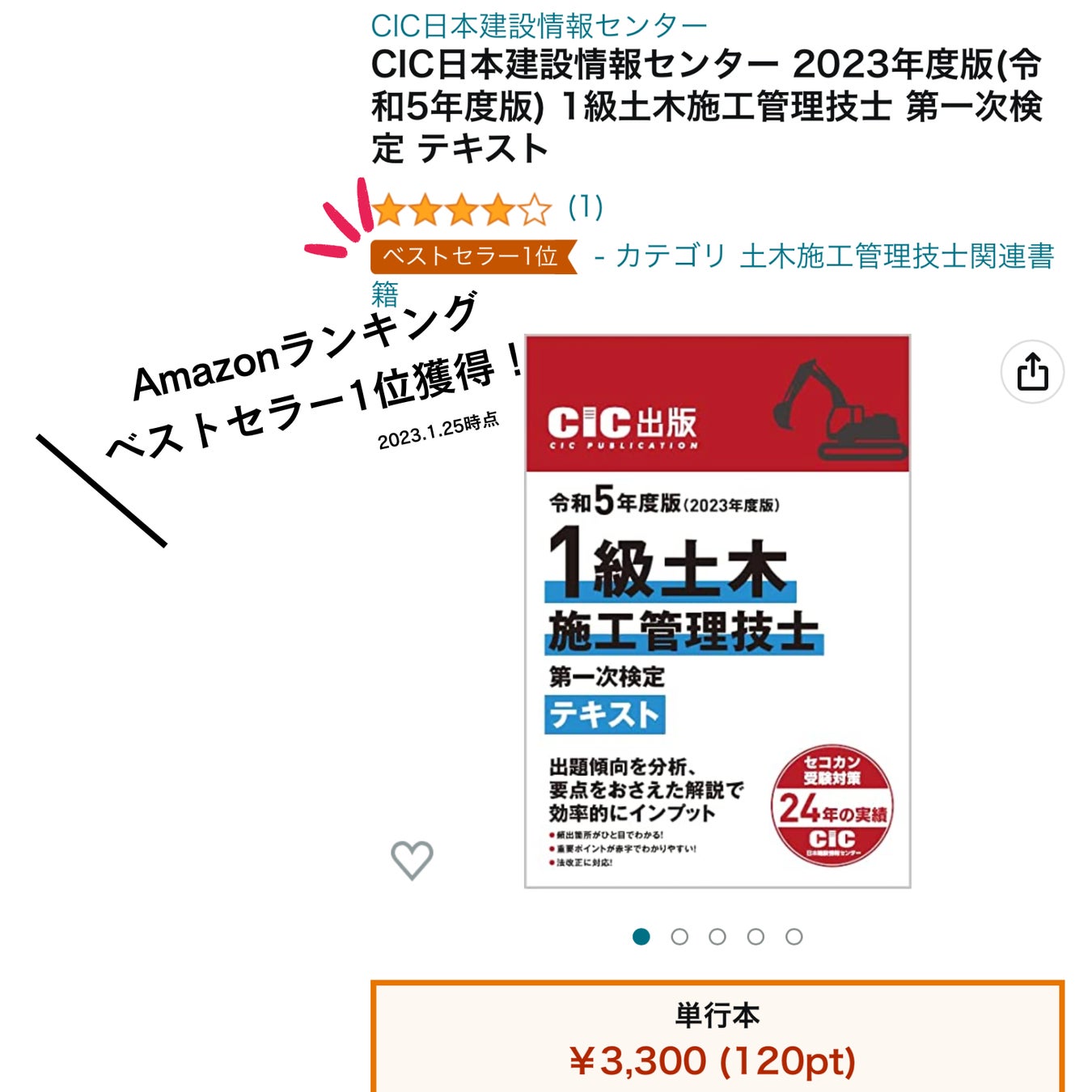 CIC日本建設情報センター 「2023年度 1級土木施工管理技士 第一次検定 テキスト」Amazonや全国の書店などで発売開始!