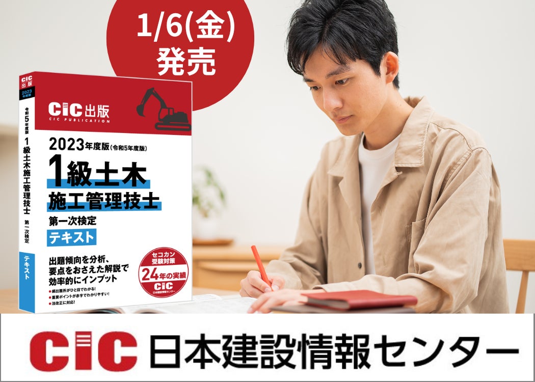 2023年1月6日、今年度の1級土木施工管理技士 第一次検定対策用のテキストをCIC日本建設情報センターがAmazonや紀伊國屋オンラインなどのECサイトや全国の書店で販売開始します。