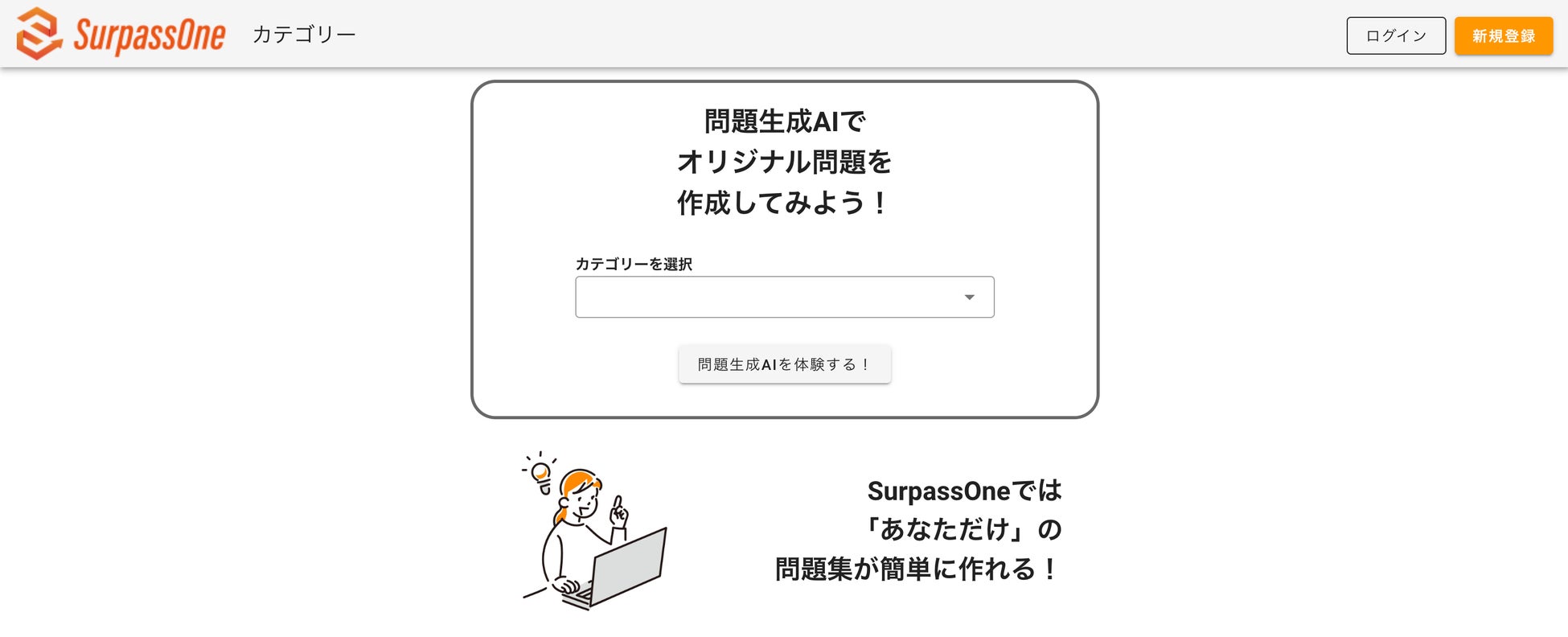 学習サービスSurpassOneは、国家試験や人気資格、知識やスキルアップのための問題集など幅広い分野で作成・販売・購入が可能なCtoCプラットフォームです。問題作成をする講師は副業や本業にするためのステップアップとして活動でき、受講生はSurpassOneの利用によって就職や転職、リスキリングなどに役立てていただけます。