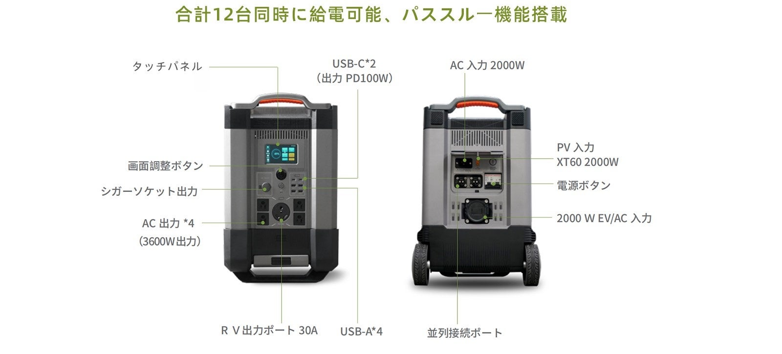 - R4000が持つ3600Wh超大容量/3600W超高出力