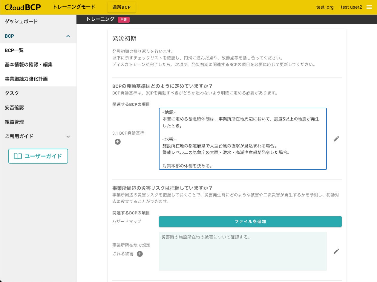 企業の事業継続計画(BCP)の策定・運用をサポートするCloudBCPが、BCPトレーニング(訓練)を実施し、BCPをリアルタイムに改善できる機能を2023年6月19日に正式リリース
