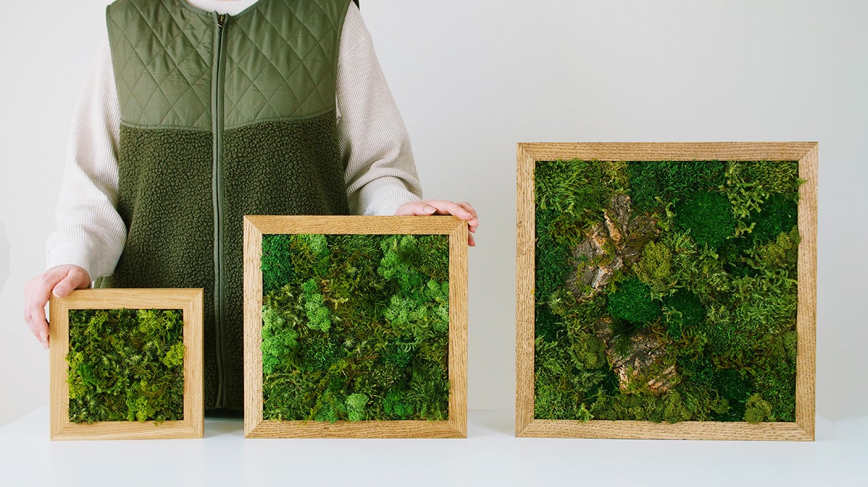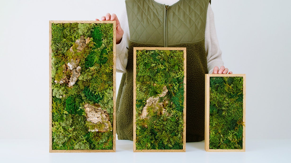 枯れない苔にデザイン性をもたらし、自然の豊かさを手間なく楽しめるだけでなく、苔本来の脱臭・消臭効果を持ちながら、水やりの必要がない特別な加工が施されています。さらに、3つの匠の技が生み出す、唯一無二のインテリアプロダクトとして仕上げられています。まさに、空間を豊かにする「呼吸するインテリアアート」です。