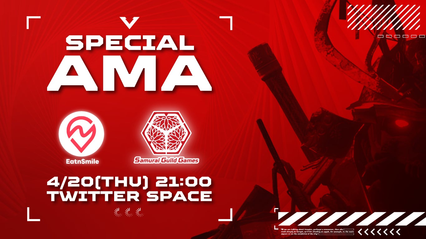 EatnSmileテストベータ版ローンチを記念して、スペシャルAMAをSamurai Guild Games と共同開催することが決定しました。詳しくは下記リンクをご覧ください。 ユーザーの皆様との交流を心より楽しみにしています。