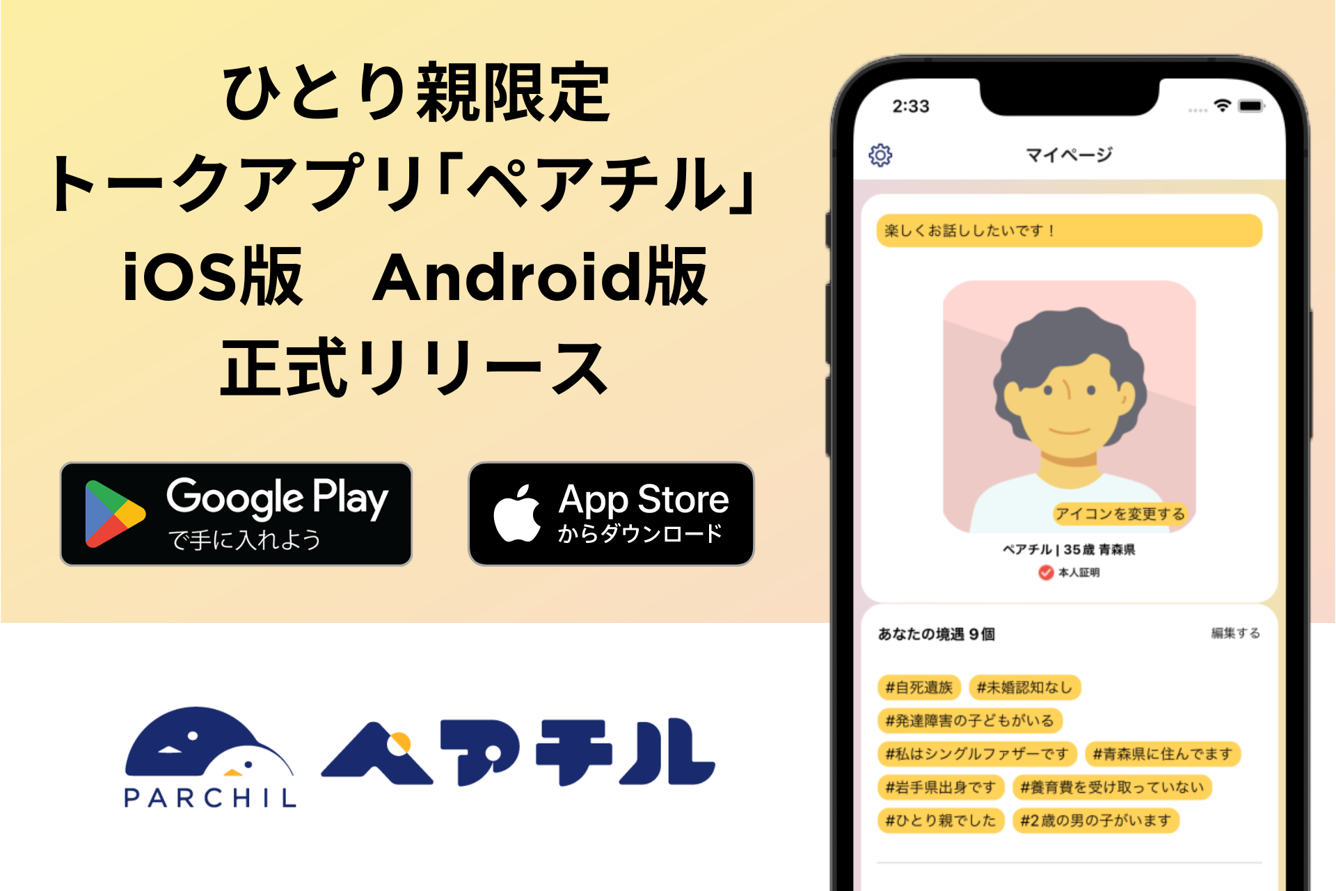 ひとり親(シングルマザー、シングルファザー)限定のトークアプリ「ペアチル」