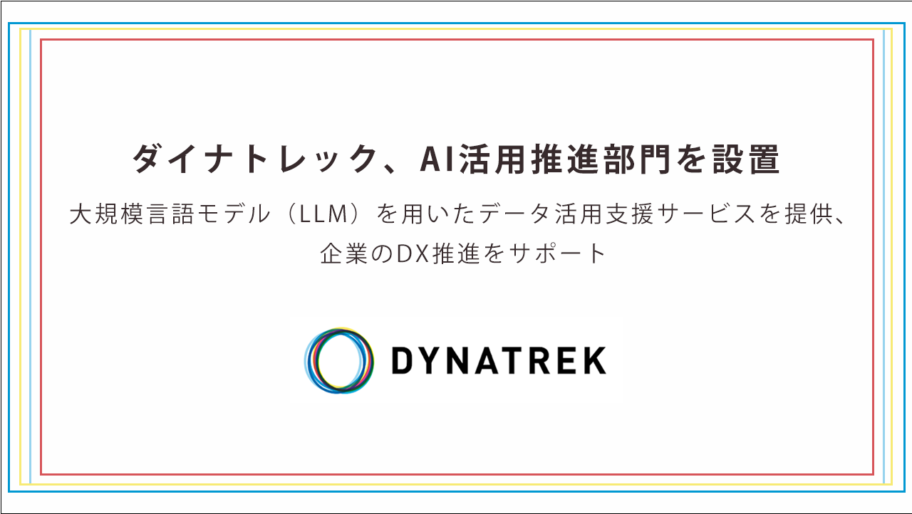 ダイナトレックは、今後もお客様のさらなるDX推進に貢献するため、最新のテクノロジーを活用し、常にお客様のニーズや市況のトレンドに応じたサービスを提供できるよう努めてまいります。