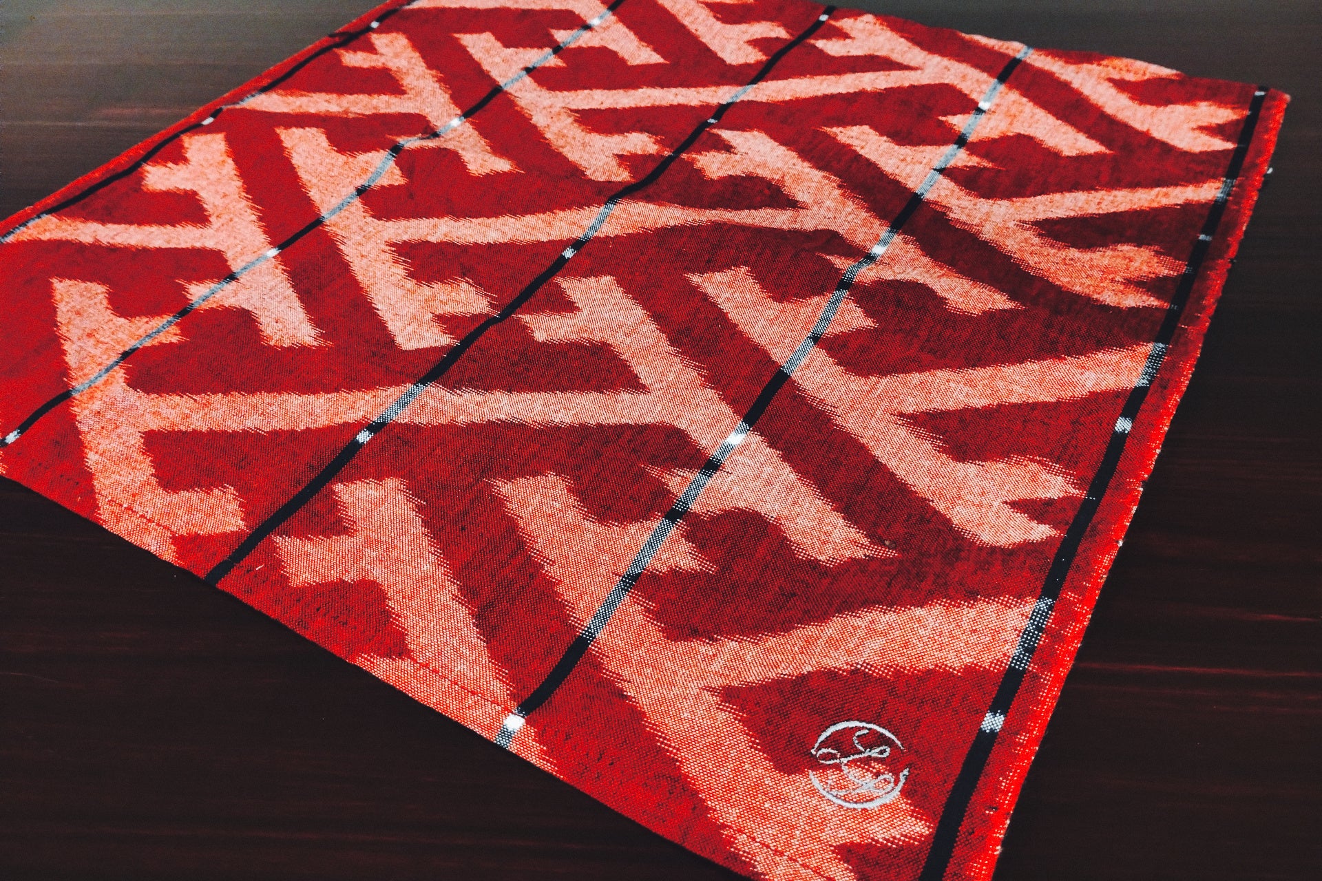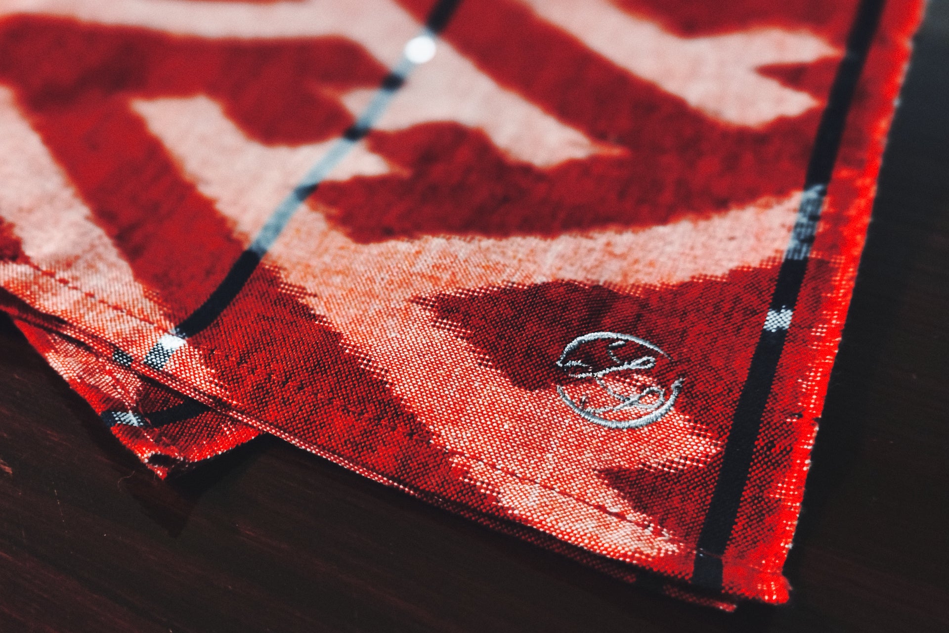 18cm四方のハンカチは、「ザ・リッツ・カールトン福岡」のインスタレーションを手掛けた「下川織物」製。