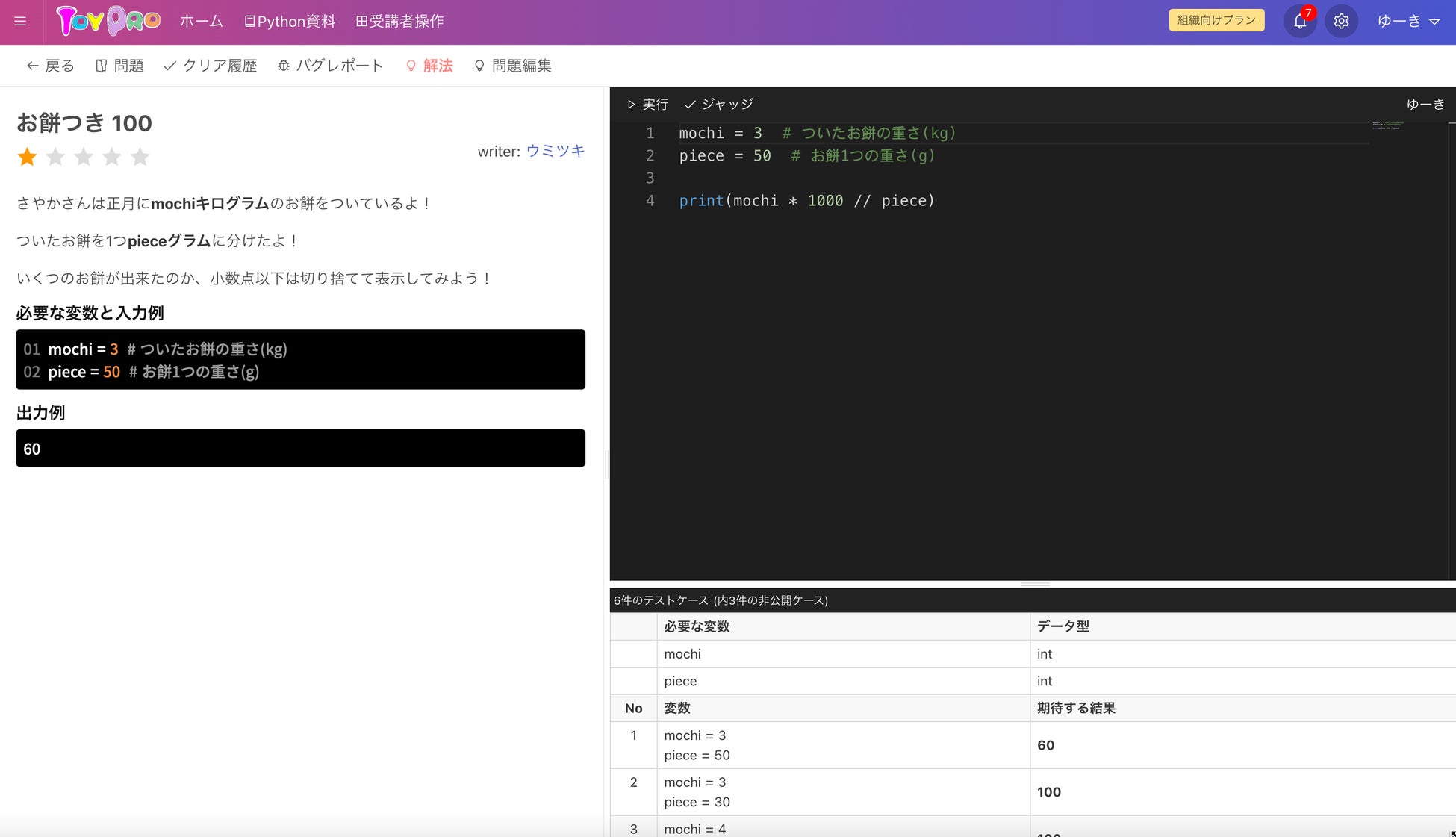 MARK株式会社が開発した『トイプロ』は、小中学生やPython初心者向けに設計された競技プログラミング形式の学習サービスです。シンプルで親しみやすい問題設定と、段階的な難易度調整により、初めてのプログラミング学習でも無理なく取り組めるのが特徴です。