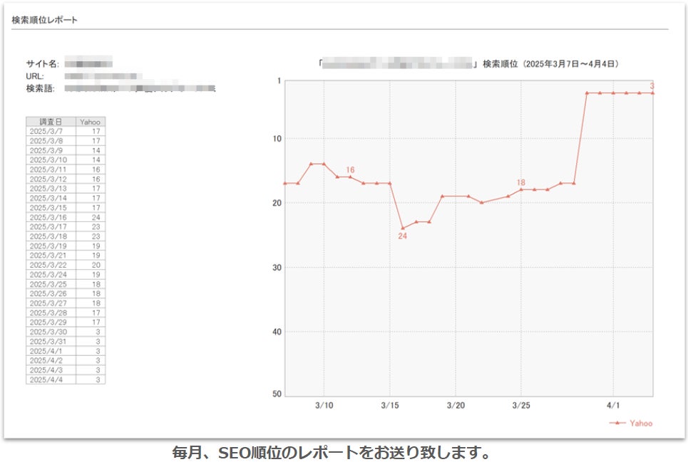 全額返金保証あり(指定5キーワードで3ヶ月以内に10位以内にランクインできない場合)