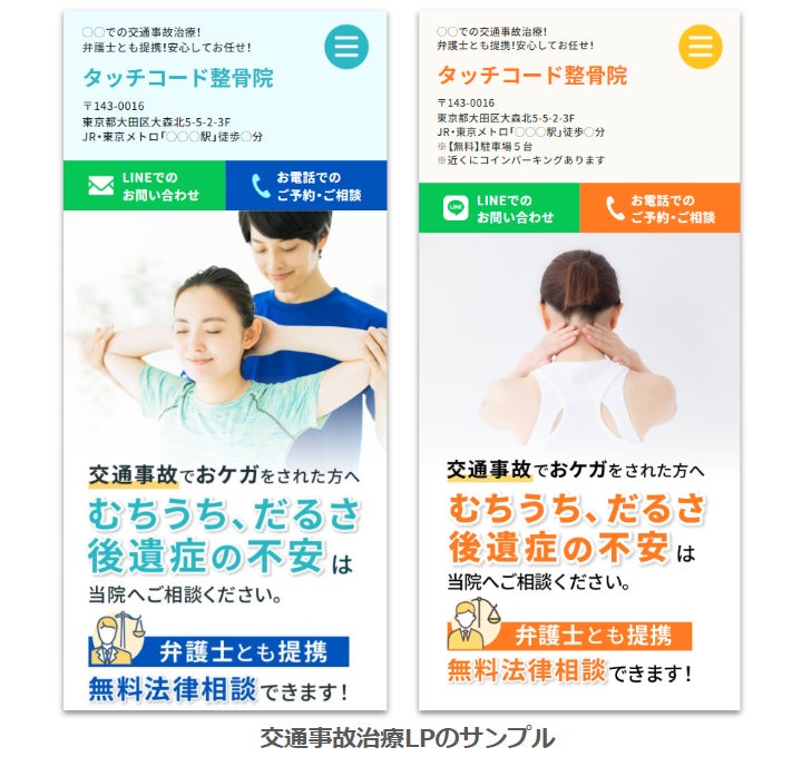 株式会社タッチコード(所在地:東京都世田谷区、代表取締役:飯野恵太)は、整骨院・接骨院向けの「交通事故治療LPサービス」を、これまでの試験運用を経て2025年4月より運用チームを刷新し、本格スタートしました。