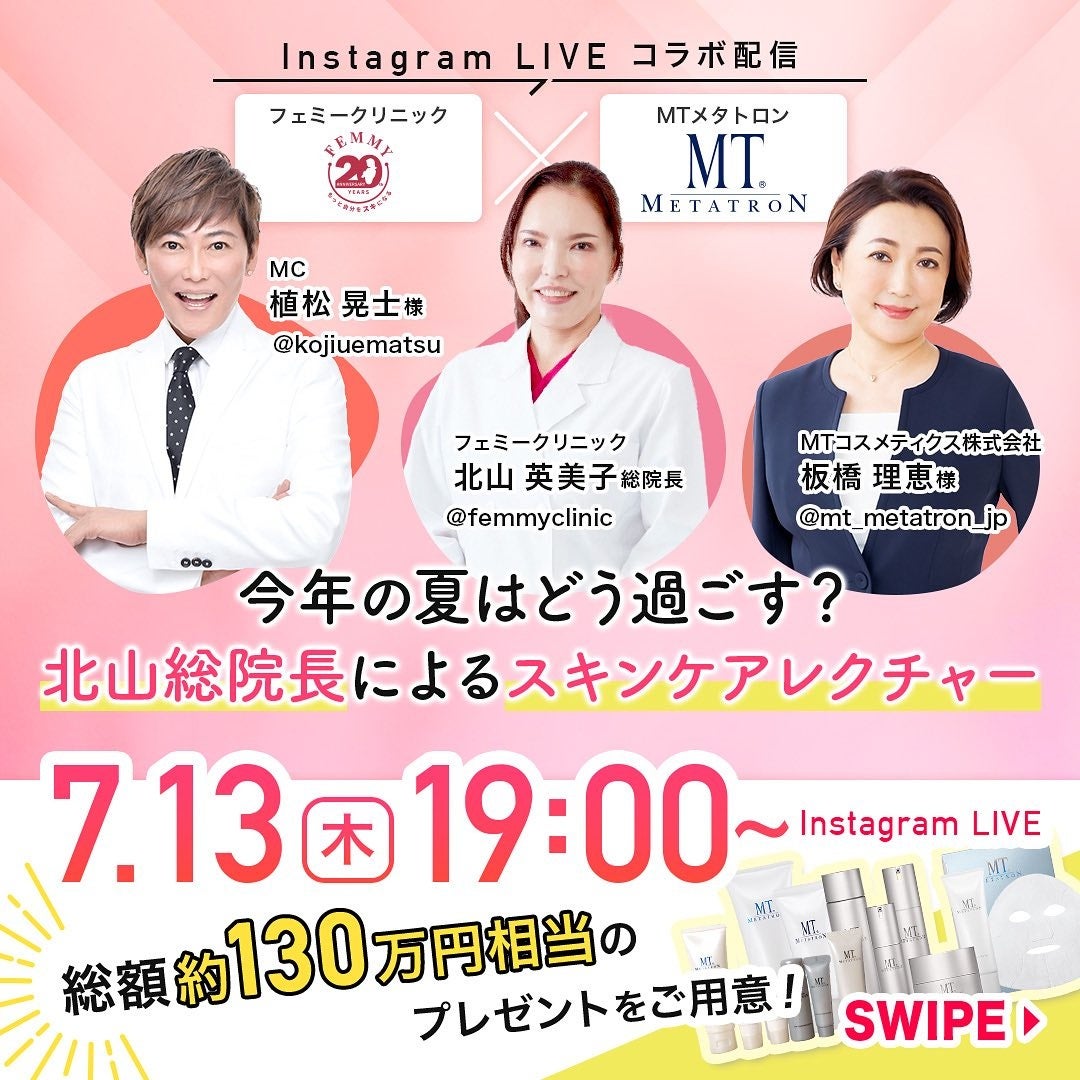 【美容皮膚科 フェミークリニック】総額約130万円相当の豪華プレゼント!スキンケアレクチャー Instagram LIVE コラボ配信