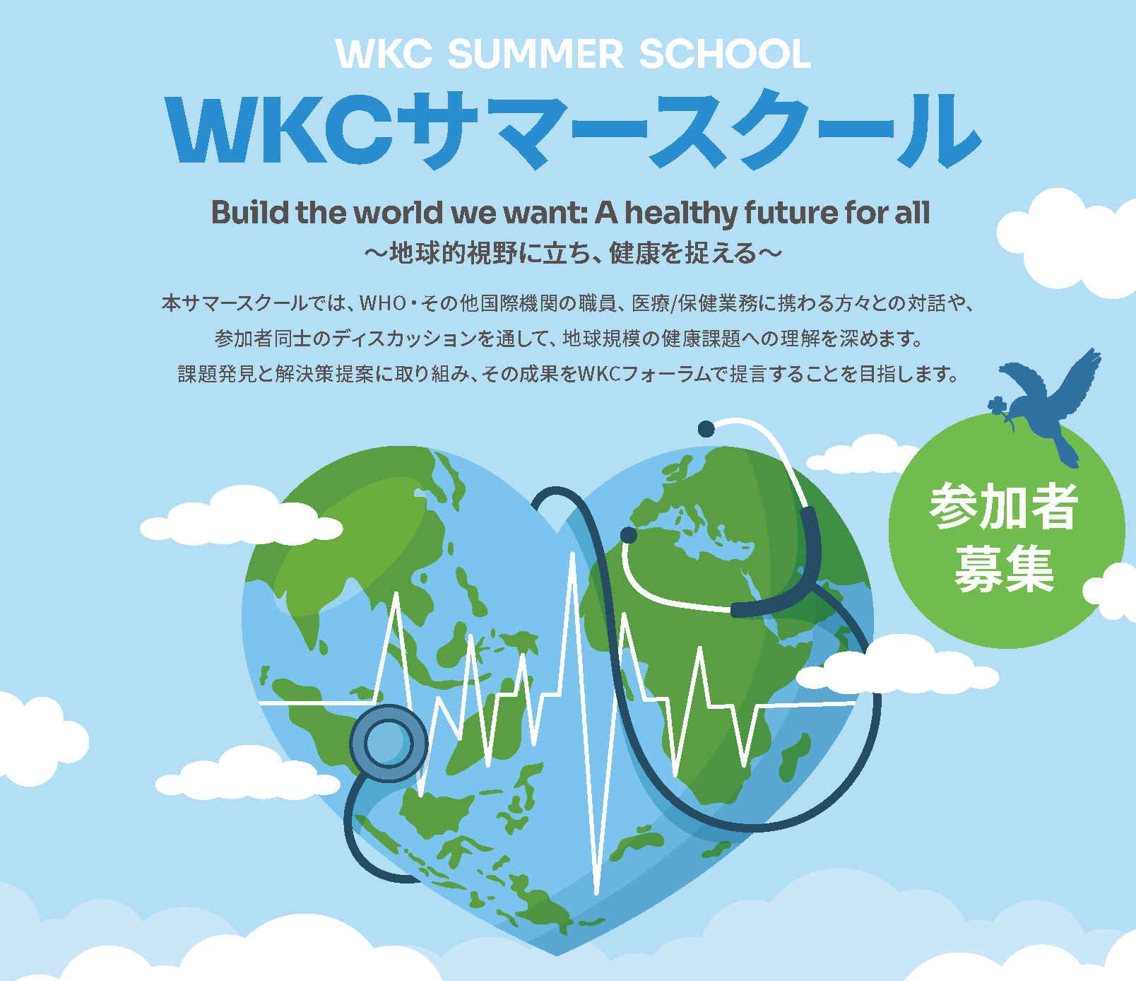 WKCサマースクールは、日本全国から集まった学生たちが地球規模の健康課題についてディスカッションを行い、その成果をフォーラムで発表する取り組みとして2022年に始動しました。WHOや日本に拠点がある国連機関、行政・研究機関の職員との対話も行いながら、地球規模の課題を特定し、解決策の提案に向けて取り組むことを目的としています。