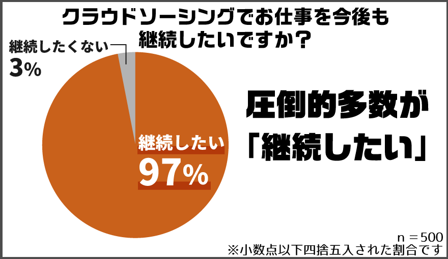 ●97%という圧倒的大多数の人が「クラウドソーシングを今後も継続したい」と回答!