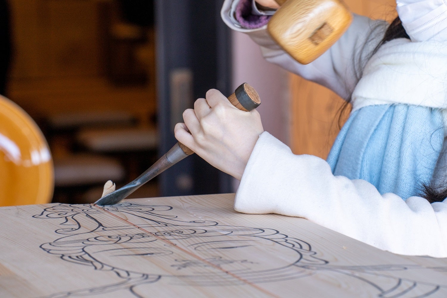 3年かけて彫られる令和の大観音像「のみ入れ式」 下絵描かれた木曽ヒノキに木槌 三重・四天王寺