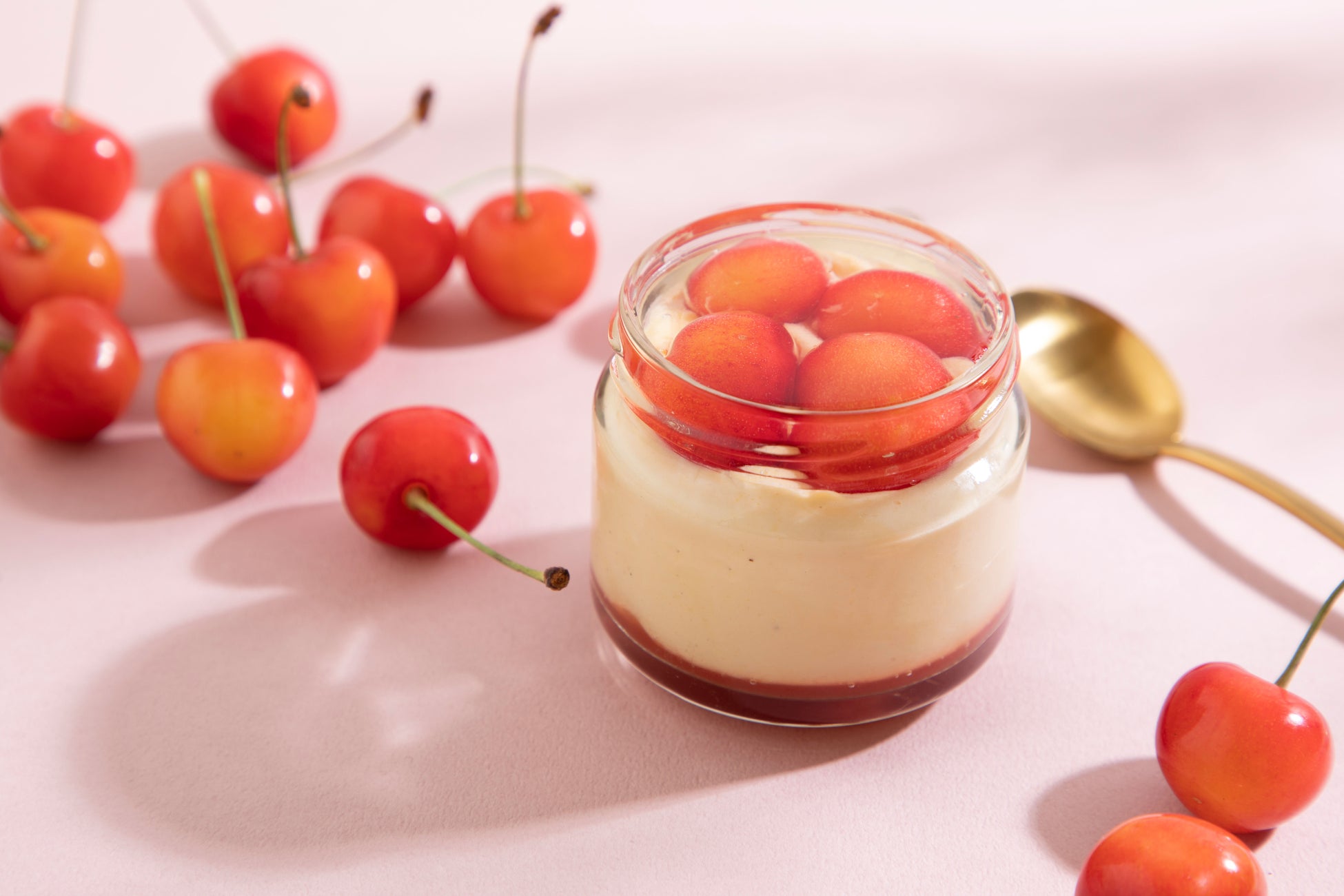 まずはフレッシュな佐藤錦の甘酸っぱさを味わい、その後に濃厚クリーミーなプリンをすくえば、さくらんぼとチーズが織りなす至高のハーモニーをお楽しみいただけます。