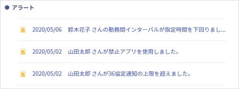 前日0時~当日0時までのPC操作状況を集計し、翌日に36協定通知アラートのメールが送信され、管理者画面で確認することができるようになります。