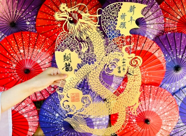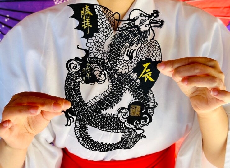 福島八幡宮のシンボル翼竜の飾りを模した切り絵御朱印「福辰」
