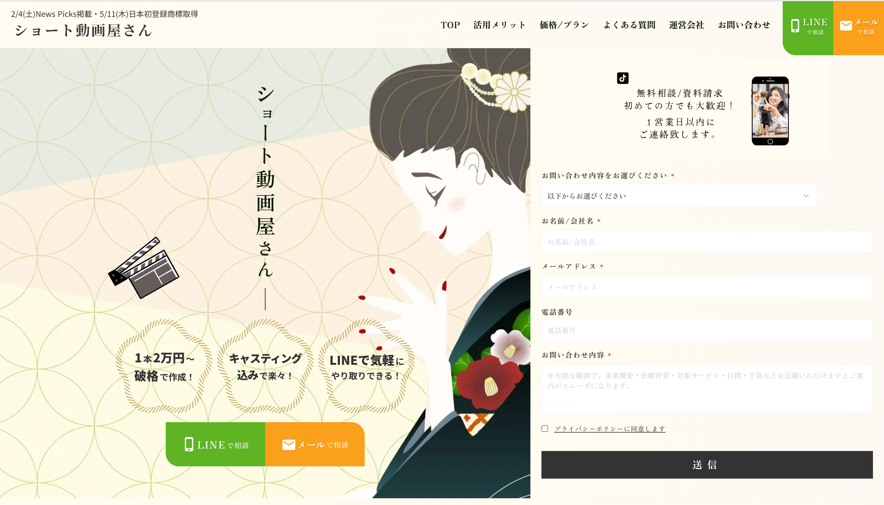 私たちは、ショート動画制作で価値を届ける1本20,000円〜高コスパの「ショート動画屋さん」です。