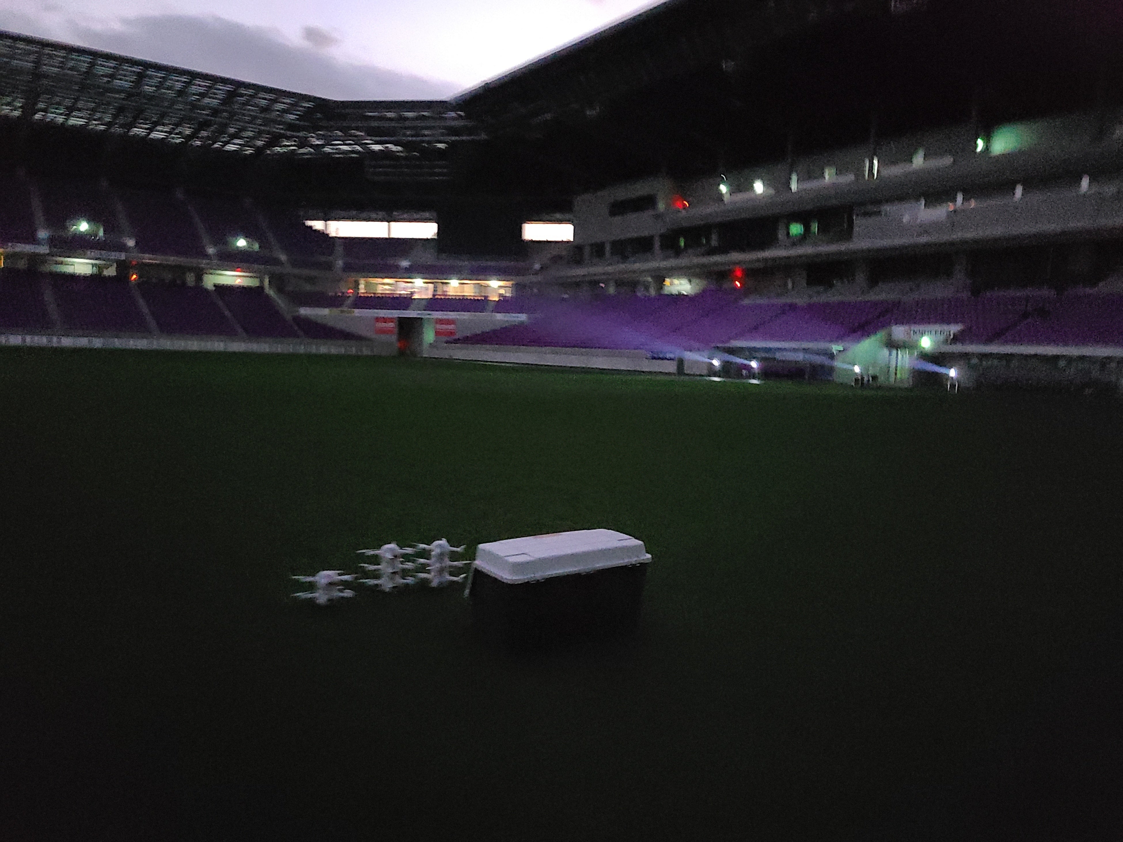 サンガスタジアムby KYOCERAならではのピッチに近い客席の配置はドローンショーを近くで観覧できると同時に全席S席という環境を作り出すことができます。