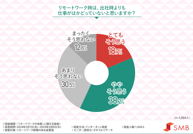 約6割がリモートワーク時は出社時よりも仕事がはかどらないと回答しました。