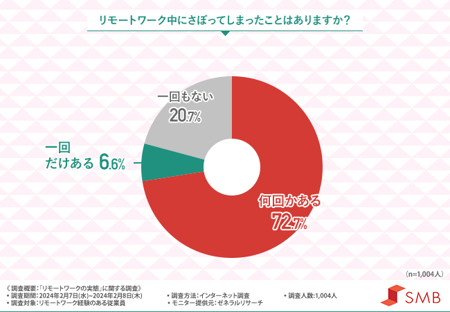 今回の調査で、約8割がリモートワーク中にさぼってしまったことがあることが明らかになりました。