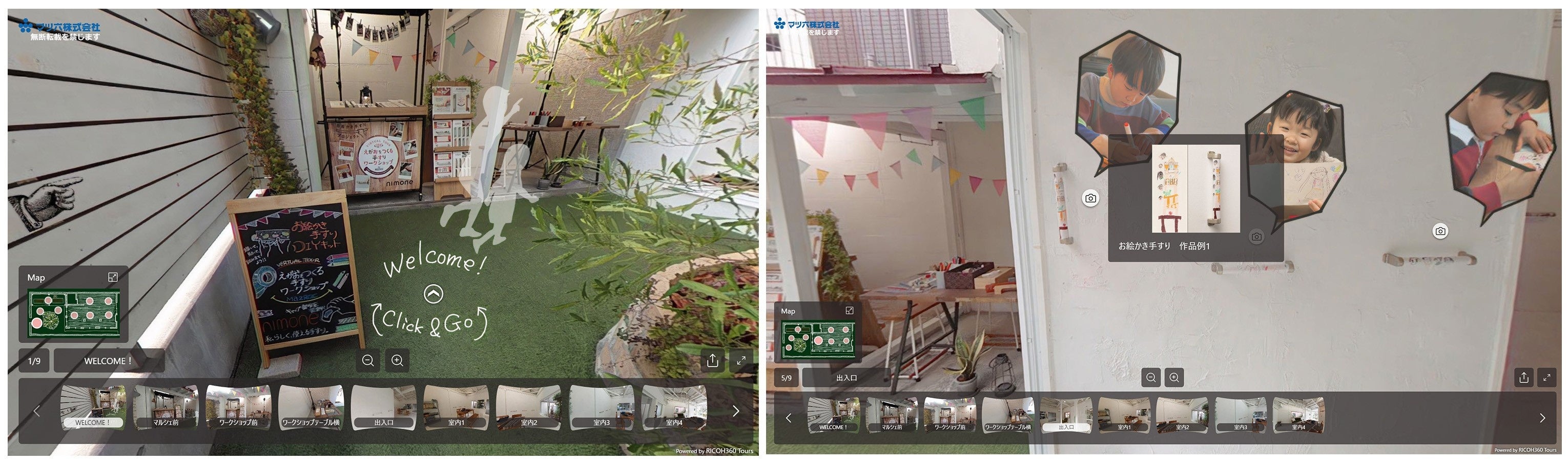 また発売を記念して、VRツアー「えがおをつくる手すりワークショップ」を公開しました。お友達の家に遊びに来たようなバーチャル空間で、お絵かき手すりやnimoneなど、世界にひとつだけのオリジナル手すり制作を体感できます。同ツアーは店頭POPなどでもご案内し、お客様がご購入前に作り方の動画や作品例をご確認いただくことができます。